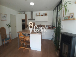 Une organisation intérieure idéale : Belle pièce de vie lumineuse de 48,58 m² : espace entrée avec placard, séjour chaleureux et salon cosy avec poêle à pellets, cuisine ouverte aménagée et équipée.