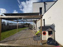 La terrasse de 40 m², idéale pour des apéros ensoleillés ou des dîners en plein air, est un prolongement naturel de votre salon. Imaginez des matins paisibles à siroter votre café en admirant le paysage, ou des soirées estivales sous les étoiles. Le terrain de 669 m² vous offre un espace vert généreux, parfait pour cultiver vos passions ou simplement profiter de la nature en toute intimité.