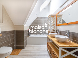 À l'étage, le palier dessert trois autres chambres et une seconde salle d'eau. L'une des chambres est aujourd'hui aménagée en salle de cinéma, mais elle peut redevenir un espace de nuit très facilement.