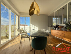 Elle se compose de cinq grandes chambres lumineuses, d'un bureau idéal pour le télétravail, de deux salles d'eau et de superbes pièces de vie spacieuses baignées de lumière. La cuisine aménagée et équipée s'ouvre sur un espace convivial, parfait pour recevoir famille et amis.