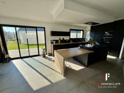NOUVEAUTE-CHEZ FLO IMMOBILIER 10MN CAEN NORD ENTRE CAEN ET LA MER Sur la commune de Bénouville, très recherchée pour sa proximité des plages de la côte de Nacre, et du centre ville de Caen. Dans un lotissement de standing de 15 parcelles, en impasse et au calme belle maison contemporaine réinterprétant la 'longère Normande' Bénéficiant de beaucoup de luminosité, cette maison de 2022 offre de très beaux volumes de réception avec un séjour-salon bien exposé avec un toit cathédrale partiel donnant sur une cuisine américaine aménagée et équipée, une belle suite parentale au rez-de-chaussée, avec dressing et salle d'eau, un cellier, un wc. À l'étage, un palier distribue quatre grandes chambres, mezzanine avec vue sur le séjour, une salle de bains, un wc indépendant. Chauffage par pompe à chaleur. Un garage complète ce bien. Le tout sur une parcelle de plus de 790M². Très belles prestations. Commerces à 100 mètres pied!