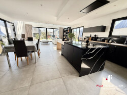 NOUVEAUTE-CHEZ FLO IMMOBILIER 10MN CAEN NORD ENTRE CAEN ET LA MER Sur la commune de Bénouville, très recherchée pour sa proximité des plages de la côte de Nacre, et du centre ville de Caen. Dans un lotissement de standing de 15 parcelles, en impasse et au calme belle maison contemporaine réinterprétant la 'longère Normande' Bénéficiant de beaucoup de luminosité, cette maison de 2022 offre de très beaux volumes de réception avec un séjour-salon bien exposé avec un toit cathédrale partiel donnant sur une cuisine américaine aménagée et équipée, une belle suite parentale au rez-de-chaussée, avec dressing et salle d'eau, un cellier, un wc. À l'étage, un palier distribue quatre grandes chambres, mezzanine avec vue sur le séjour, une salle de bains, un wc indépendant. Chauffage par pompe à chaleur. Un garage complète ce bien. Le tout sur une parcelle de plus de 790M². Très belles prestations. Commerces à 100 mètres pied!