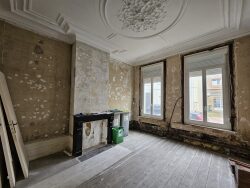 Au rdc: une entrée, un salon/salle à manger, une cuisine (nue), une buanderie, un wc. Au 1er: une chambre avec dressing, une salle de bains (nue avec arrivées d'eau). Au 2nd: deux chambres. Cave, cour sans vis à vis. Garage dans la rue parallèle (3mns à pieds).