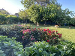 Pour finir cette visite, nous vous emmenons dans le jardin repensé récemment par sa propriétaire comme une partition qui dévoile ses couleurs au fil des saisons : des persistants pour un plein hiver dégradé de verts, un rhododendron pour célébrer la fin de ce dernier, accompagné par des jonquilles parsemées çà et là, des primevères qui ouvrent le bal aux rosiers et hibiscus, aux saules crevettes et aux lauriers roses pendant que la griseline et le pittosporum assurent les transitions, ...