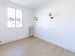 Une chambre de 9m² sol parquet, avec fenêtre côté entrée.