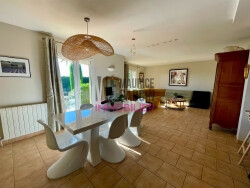 Dans un superbe environnement en colline, découvrez cette villa de plain-pied offrant 134 m² habitables. Elle se compose de 4 chambres dont une suite parentale, d'un bureau, ainsi que de 2 salles d'eau. La cuisine neuve, ouverte sur un vaste séjour baigné de lumière, crée un espace de vie chaleureux et moderne. Le tout est agrémenté d'un terrain clos et arboré de 1 000 m², avec une piscine, un coin pergola, et un abri voiture. Rénovée avec soin et dotée de belles prestations, la maison bénéficie d'un calme absolu et d'un environnement sans vis-à-vis. Un bien à découvrir sans plus tarder. DPE : C