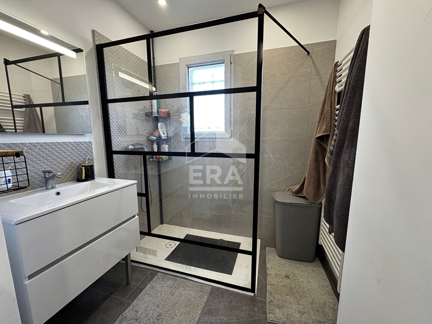 Maison 95 m² Rénovée, lumineuse avec garage et extérieur tout à pied Maison entièrement rénovée avec soin, offrant des prestations soignées et une distribution bien pensée. Au rez-de-chaussée, un séjour de 41 m² baigné de lumière grâce aux grandes baies vitrées, ouvert sur une cuisine équipée. Le tout est climatisé pour un confort optimal toute l'année. Aux premier et second étages, deux chambres spacieuses de 19 m² et 12,5 m², chacune avec sa propre pièce d'eau une configuration idéale pour une vie pratique au quotidien. À l'extérieur : grand garage, belle cour ensoleillée avec cabanon à vélos. Emplacement : commerces, écoles et services tous accessibles à pied. Le quartier est bien desservi. Diane Choplin Immobilier Contactez-nous pour organiser une visite.