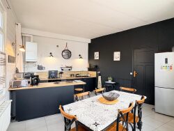 CENTRE VILLE & VUE MER ! Maison en briques, couverte d'ardoises rénovée récemment proposant de beaux volumes ! Elle se compose d'un hall d'entrée, séjour / cuisine ouverte, salon WC, courette avec salle d'eau (idéal retour de plage) Au premier étage: une suite parentale, une chambre. Au second: une suite parentale et une pièce avec sauna. Vue mer depuis les chambres, proximité immédiate de la plage et du centre ville ! Chauffage central gaz, double vitrage PVC.