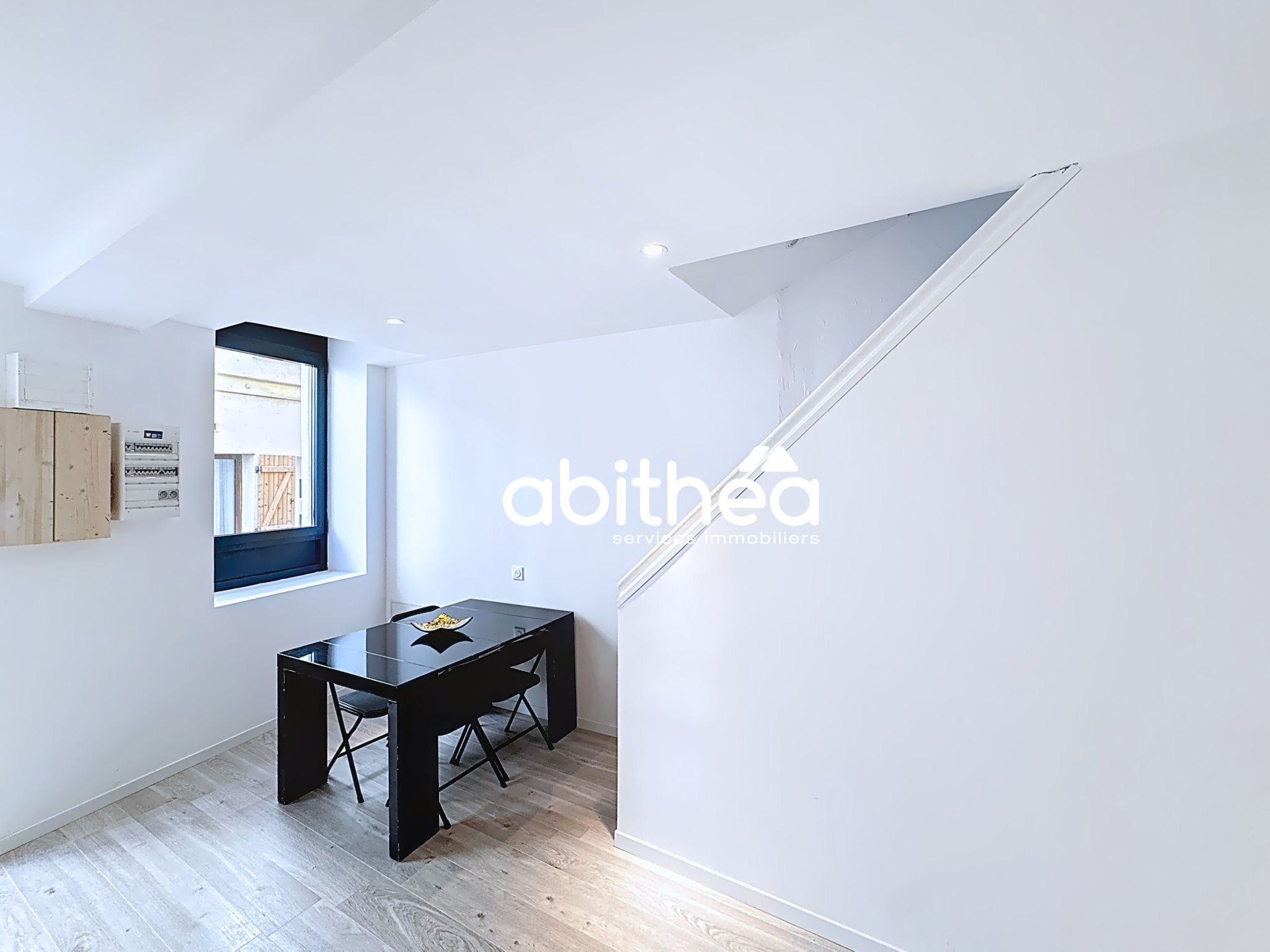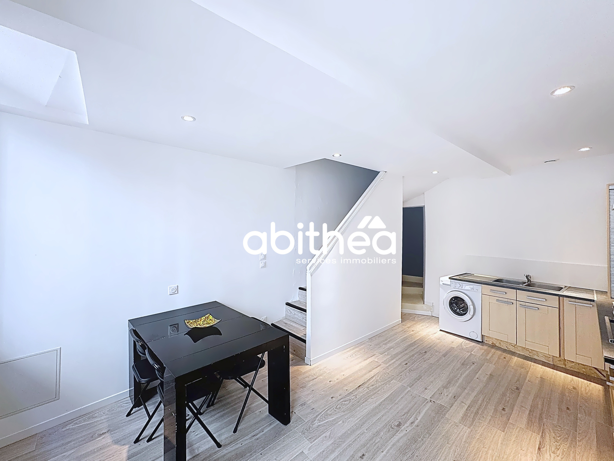 Agréable maison de ville, avec vue dégagée et à proximité des commodités. Au rez-de-chaussée: une grande entrée, un garage de 21,60m2 pouvant accueillir 2 roues ou petit véhicule, pièce de rangement de 12,60 A l'étage salon/séjour, cuisine séparée équipée, salle d'eau, WC Accès à une terrasse couverte de 21,50m2 !! Au 2ème étage deux chambres, un pallier avec penderie. Très beau potentiel, à ne pas manquer !
