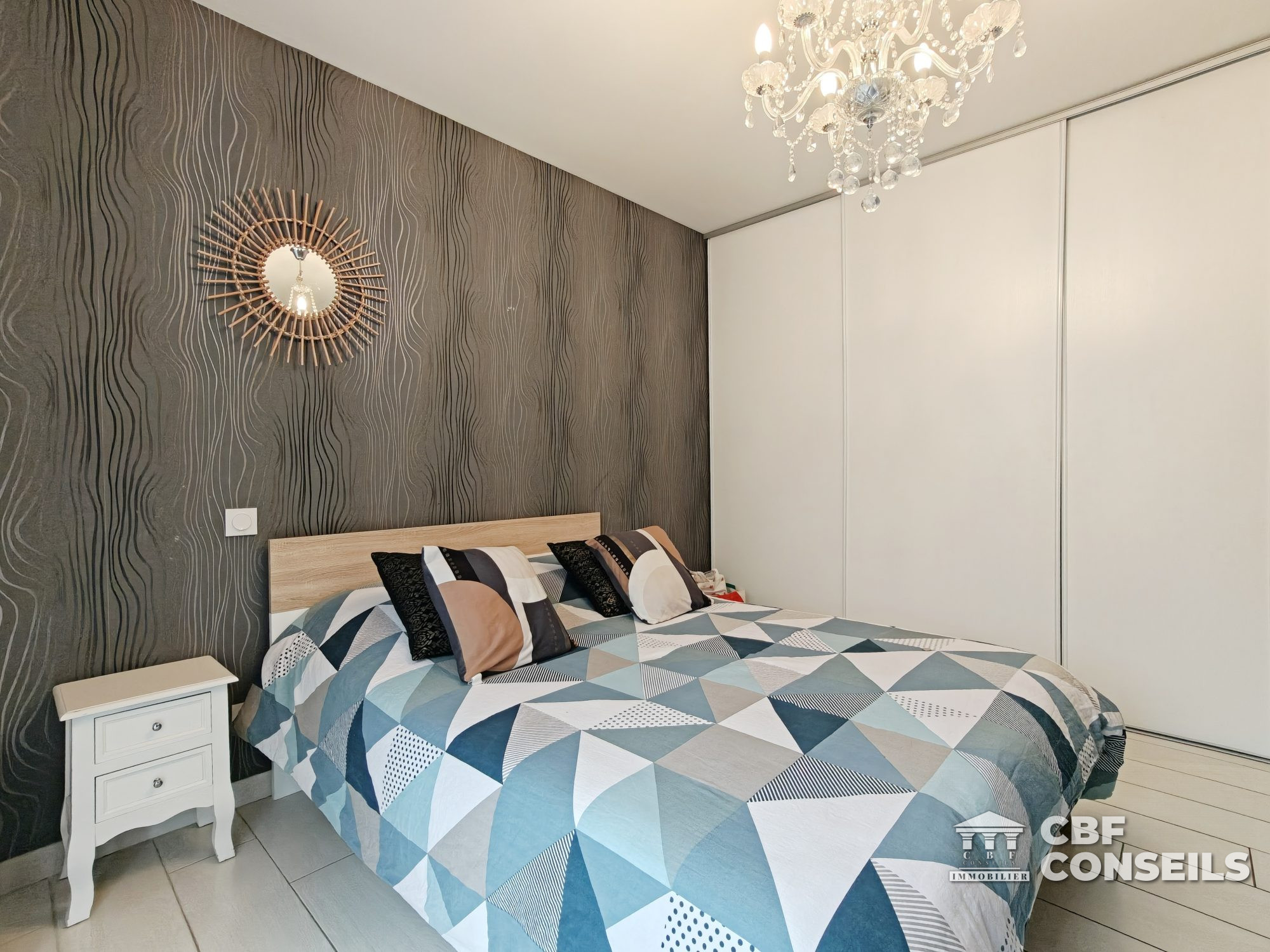 Espaces de réception Les pièces de vie, entièrement de plain-pied sur le jardin, s'ouvrent sur une somptueuse terrasse en bois exotique de 100 m², véritable prolongement de l'intérieur vers l'extérieur. Vaste espace salon-séjour avec cuisine ouverte de 48 m² Entrée élégante avec placard intégré Espaces nuit En demi-niveau :Deux belles chambres avec rangements intégrés (13 m² et 11,60 m²) Salle de bains complète avec baignoire et douche WC indépendant