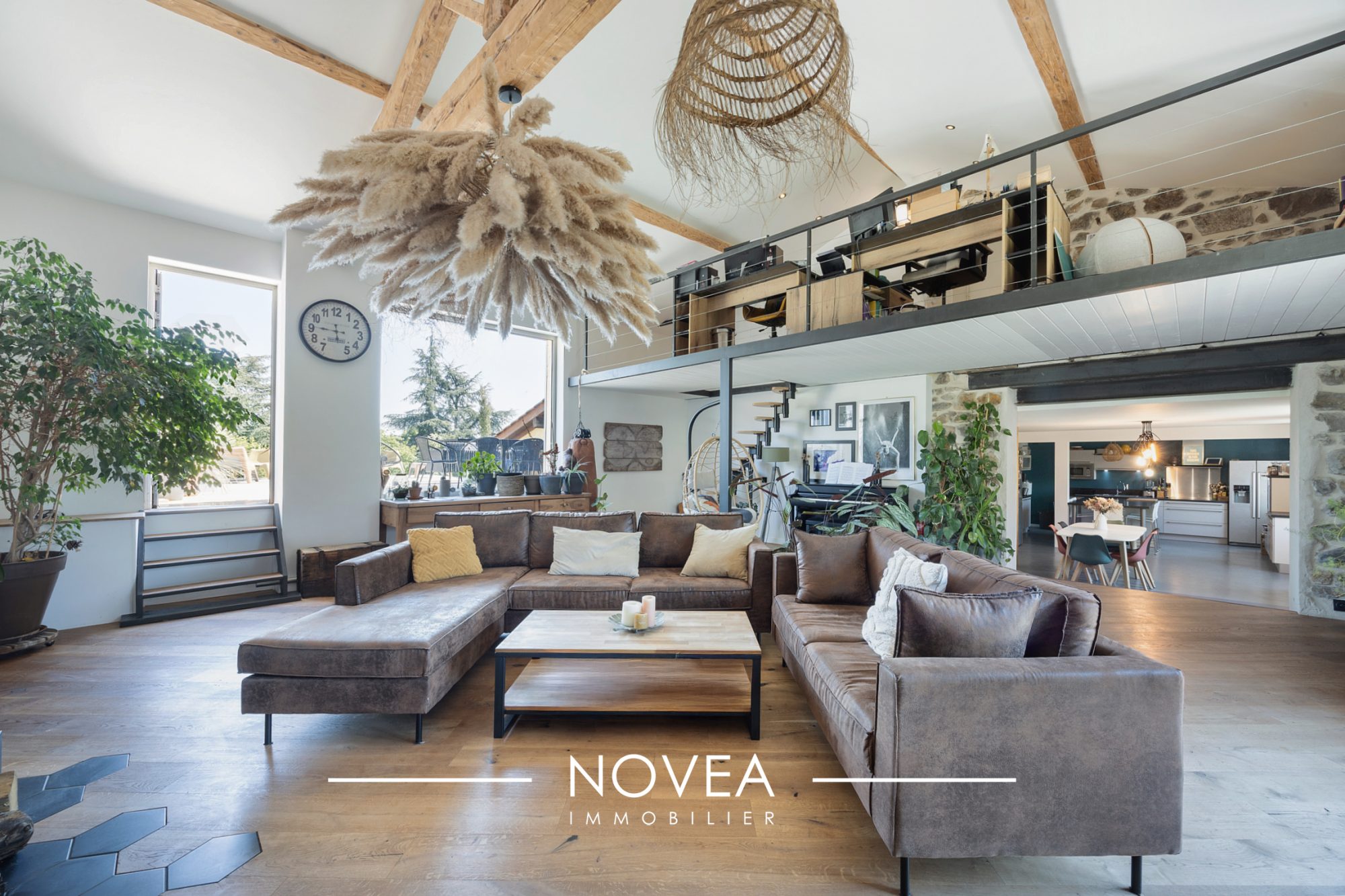 A l'intérieur, des volumes généreux Au rez de chaussée : Une entrée avec placards, un séjour imposant (58m2), un beau salon (33m2), une cuisine et sa buanderie (35m2), un bureau ou chambre (17m2) ainsi que des toilettes A l'étage : 4 grandes chambres (entre 14 et 18m2), 1 dressing (19m2), 1 salle de bain, 1 salle d'eau