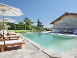 Sérénité Conseil Immobilier vous propose cette grande maison (270m2 habitables) datant de 1830 avec poutres apparentes, pierres saillantes, cheminées en marbre et un extérieur séduisant de plus de 1700 m2 exposé Sud-Ouest (piscine au sel, cuisine d'été, four à pizza, terrasses et jardin) avec de belles dépendances (120m2)