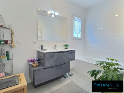 À l'étage, vous trouverez trois chambres spacieuses, parfaites pour créer des espaces personnalisés. La salle de bains, moderne et fonctionnelle, ainsi que les deux toilettes indépendants, dont un au rez-de-chaussée, garantissent un confort quotidien optimal.