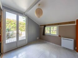 Au rez-de-chaussée, une pièce de vie lumineuse comprenant avec cuisine aménagée et équipée ouverte sur le séjour, deux chambres, une salle de bains avec coin buanderie et wc.