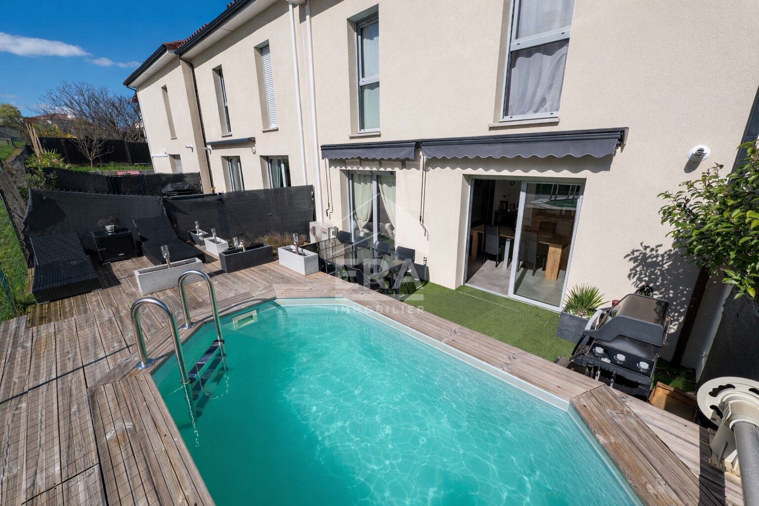 - SOUS OFFRE - MAISON À VENDRE au coeur de Chazay d'Azergues Une mise en vente DECULTIEUX Immobilier Village recherché pour sa proximité de Lyon, ses accès facilités, sa vie associative et commerçante, ses écoles et son collège. D'une surface habitable de 108 m2 habitables, cette maison profite d'une terrasse avec pergola esprit guinguette dans un jardin arboré de 225 m2. Pas de vis-à-vis malgré sa mitoyenneté sur le coté. Une disposition fonctionnelle avec une décoration moderne : . Séjour de 42,5m2 avec accès direct sur la terrasse. . Cuisine de 14,3m2 ouverte sur la pièce de vie . 3 chambres dont une avec dressing de 16,88m2 et les 2 autres de 13 et 12 m2. - salle d'eau avec douche à l'Italienne -espace lingerie. . WC . Stationnement extérieur pour 3 véhicules dans le jardin clos. - Abri de jardin pour le rangement des outils. Confort et équipement . Volets roulants, portail motorisé . Huisseries double vitrage - Poêle à bois et radiateurs basse consommation. . DPE performant classe D. Toutes proximités : à moins de 5 minutes à pied des commerces, établissements scolaires, marché, nombreuses activités sportives et culturelles. Les informations sur les risques auxquels ce bien est exposé sont disponibles sur le site Géorisques : www.georisques.gouv.fr Un reportage photos complet sur notre site www.decultieux-immobilier.com - visite virtuelle sur demande A votre service pour connaître la valeur de votre bien, Decultieux immobilier, la référence pour votre projet immobilier sur la métropole Lyonnaise depuis 1962 - Adhérent FNAIM - Membre Property Partner International - tél 04 78 54 87 86 - Contactez Patrick MONFRAY Tél, 06 71 59 71 09