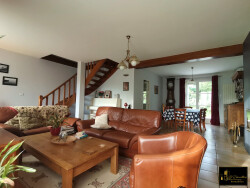 La Crémaillère Immobilier a le plaisir de vous présenter en exclusivité ce pavillon traditionnel des années 90, situé au coeur d'un village dynamique offrant toutes les commodités essentielles : écoles maternelle et primaire, garderie, centre aéré, médecin, dentiste, pharmacie, épicerie et restaurant. Avec une superficie généreuse de 163 m² habitables, cette maison séduit par son volume confortable et fonctionnel, idéal pour accueillir une grande famille ou toute personne en quête d'espace. Au rez-de-chaussée, elle vous propose une entrée avec vestibule, un bureau pouvant aisément être aménagé en chambre, un séjour lumineux de 41 m² agrémenté d'une cheminée avec insert, une cuisine indépendante avec cellier attenant, une chambre, une salle d'eau ainsi qu'un WC.À l'étage, un palier avec espace bureau dessert quatre belles chambres, ainsi qu'une salle de bains avec WC. Un garage attenant avec grenier offre un espace de rangement supplémentaire. À l'extérieur, vous profiterez d'un magnifique terrain sans vis-à-vis de 860 m², parfait pour savourer des moments de détente en toute intimité. Les atouts majeurs de cette propriété : de beaux volumes parfaitement distribués, un excellent état d'entretien, une bonne performance énergétique, une situation idéale au sein d'un village vivant et recherché. Une opportunité rare, à découvrir sans tarder.