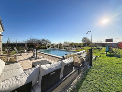 À l'extérieur, le terrain de 1 332 m² accueille une piscine chauffée de 8 × 4 m (? 50 m³), parfaitement exposée, avec ensoleillement optimal toute la journée.