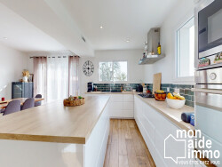 A 10 minutes de Créon, située sur la commune de Baron, superbe maison contemporaine de plain-pied construite en 2020. Profitez d'un cadre de vie au calme absolu tout en bénéficiant de belles prestations et de garanties solides. Les points forts : Sérénité totale : Maison sous garantie décennale et assurance dommage ouvrage jusqu'en 2030. Économies d'énergie : Maison basse consommation grâce à sa pompe à chaleur Aqua/Air et ses panneaux solaires (factures d'énergie très réduites). L'espace de vie : Une magnifique pièce de vie de 50 m², baignée de lumière grâce à sa triple exposition. Cuisine américaine entièrement aménagée et équipée, idéale pour la convivialité. Entrée fonctionnelle avec placard intégré et une buanderie séparée. Le coin nuit : 3 grandes chambres, toutes équipées de placards. La chambre parentale bénéficie de son propre dressing privatif. Extérieur :Édifiée sur une parcelle de plus de 700 m², vous profiterez d'un jardin spacieux, terrain piscinable. Maison reliée au réseau d'assainissement collectif. Le PLU permet la construction d'un garage ou d'un carport.