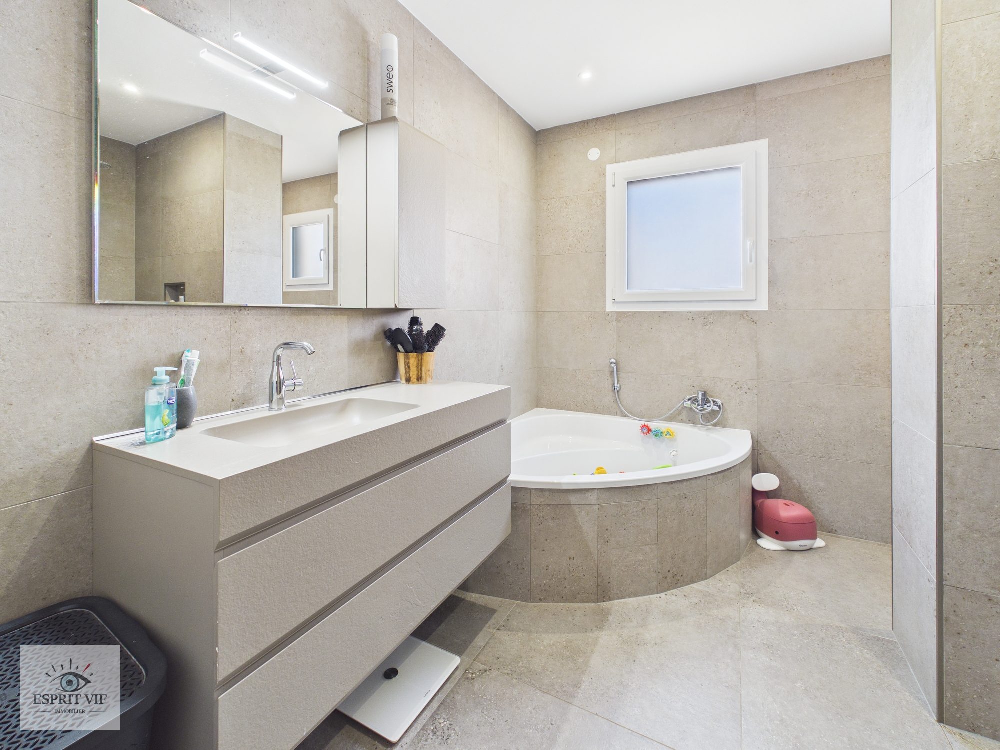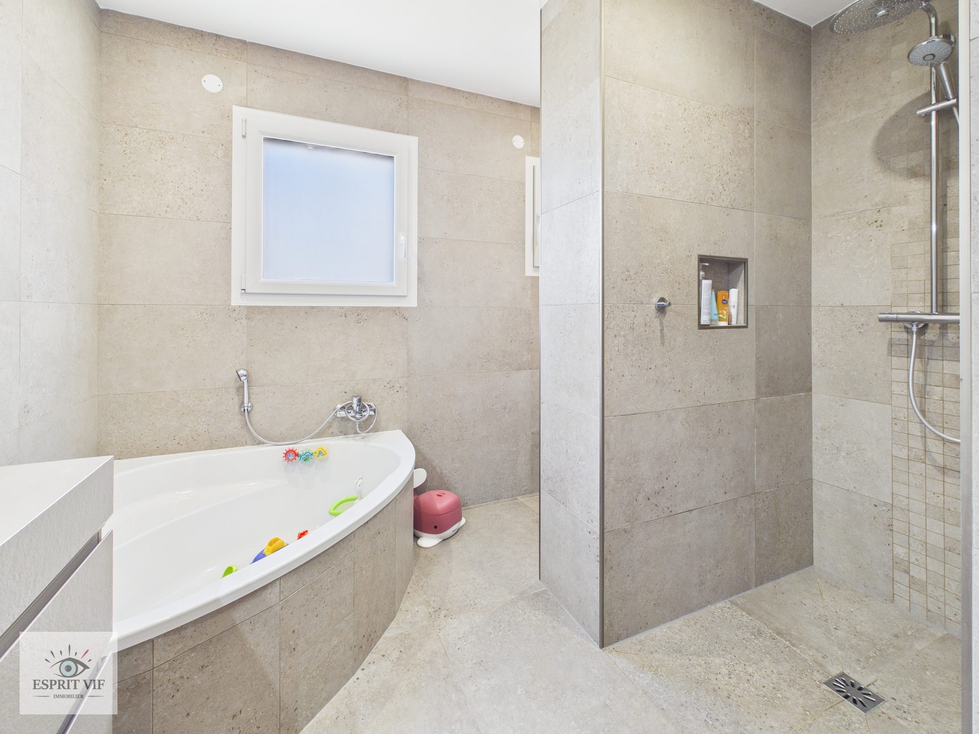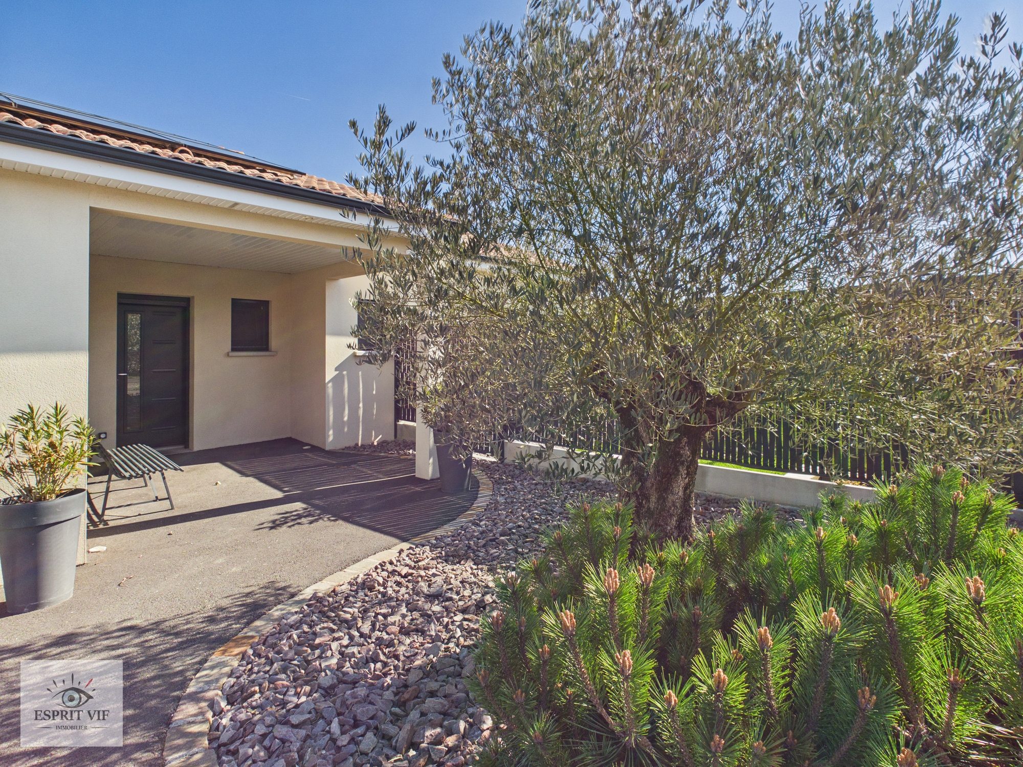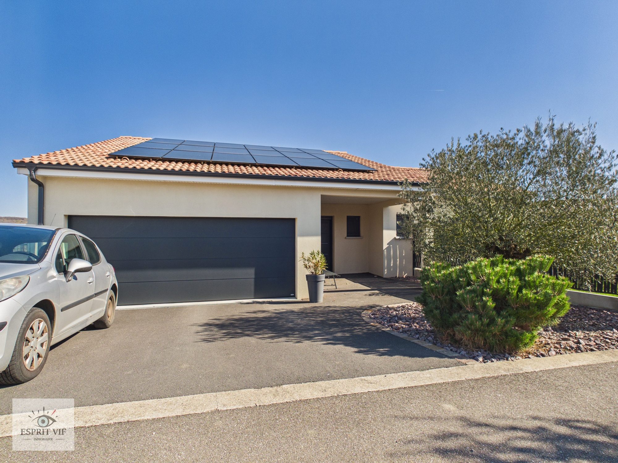 Maison de plain-pied : Surface habitable : environ 160 m² Nombre de chambres : 3 Surface du terrain : 816 m² Surface du garage : 36,89 m² Année de construction : 2001, rénovée en 2021 (embellissements intérieurs)