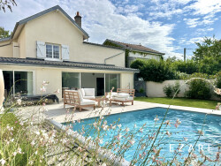 Dans un jardin intime, clos et verdoyant de 400 m², venez découvrir cette charmante maison familiale des années 40, rénovée avec goût, offrant une surface habitable de 150 m². Elle se compose d'un hall d'entrée desservant un salon-séjour lumineux d'environ 45 m², exposé est-ouest, une cuisine indépendante entièrement équipée et aménagée, ainsi qu'un WC séparé. Au premier étage, vous trouverez trois chambres lumineuses, un dressing, une grande salle d'eau et des WC indépendants.Au deuxième étage, deux chambres supplémentaires avec point d'eau complètent l'ensemble. De nombreux rangements sont à disposition.Équipements : poêle à bois, chaudière gaz, double vitrage. Les rénovations récentes comprennent : isolation intérieure, peintures, sanitaires et chauffe-eau.