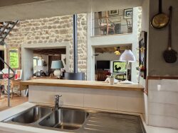 Domaize Situé dans un hameau, au sein du parc naturel du Livradois Forez, dans le Puy-de-Dôme en région AuvergneRhône-Alpes, cet ensemble de deux maisons en pierres rénovées par un architecte, offre un cadre de vie paisible et privilégié. A 35 km d'Ambert et 50 km de Clermont-Ferrand il est facilement accessible via une petite route communale.La maison principale, répartie sur trois niveaux, s'ouvre sur un vaste hall vitré et traversant qui distribue d'un côté un grand salon avec cheminée et de l'autre une cuisine ouverte avec buanderie et toilettes.Depuis le hall, équipé d'un poêle à bois, on accède au jardin et à la terrasse.L'étage dispose d'une suite parentale avec dressing et salle de bains et de deux autres chambres, d'une salle d'eau, de toilettes et d'un petit espace polyvalent.Le deuxième niveau offre deux chambres supplémentaires, des sanitaires et un cabinet de toilettes.La dépendance, ou seconde maison, s'étend sur plusieurs niveaux et propose au rez-de-jardin une grande pièce de vie avec cuisine ouverte et toilettes, tandis que les étages supérieurs accueillent quatre chambres, une salle d'eau et des toilettes. Cette maison, qui profite de la piscine, peut être utilisée pour recevoir famille et amis ou être louée en saison.Le terrain, d'environ 2 000 m², comprend deux jardins, dont l'un offre une vue panoramique et l'autre est équipé de la piscine. Un atelier et un auvent / pool house complètent cet ensemble harmonieux, tandis que deux parkings facilitent le stationnement.Rénovée avec goût et prestations de qualité cette propriété allie confort moderne et charme de l'ancien. Elle se distingue par son cachet, son caractère et l'élégance de ses espaces, offrant un environnement idéal pour ceux qui recherchent l'authenticité, le confort et l'art de vivre à la campagne. Retrouvez l'intégralité de nos offres sur notre site WWW.BILLOM-IMMOBILIER.FR Etablissement ne pouvant détenir d'autres fonds effets ou valeurs autres que celle représentative de sa propre rémunération.
