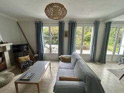DOUARNENEZ/ Quartier TREBOUL - Excellent emplacement. A deux pas du Port de plaisance dans une petite ruelle très calme et agréable découvrez cette néo-bretonne des années 70 avec un joli jardin de 400 m² et une terrasse abritée des vents exposée plein SUD. Au rez-de-chaussée, entrée avec placards, cuisine indépendante, pièce de vie de 28m² baignée de lumière avec accès terrasse, WC avec lave-main, garage (15m²). A l'étage, palier, 4 chambres, une salle de bain. Combles.