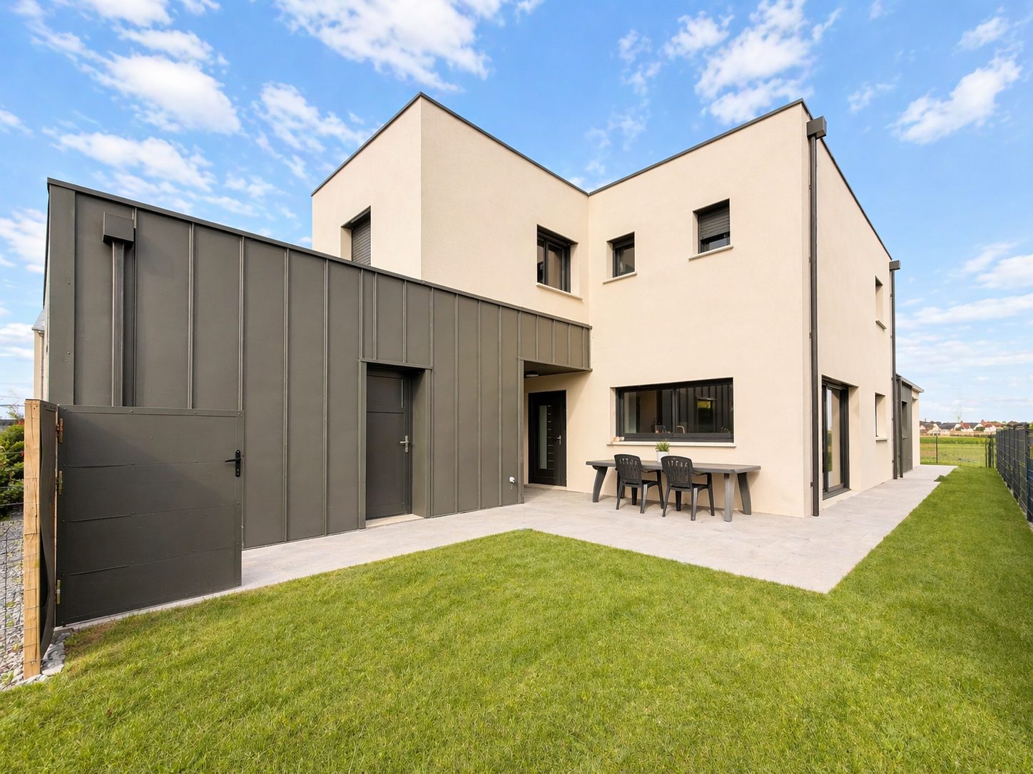 EXCLUSIVITE FLO IMMOBILIER 10MN CAEN NORD-BUS DE VILLE-A DOUVRES LA DELIVRANDE Dans un bel environnement ancien très recherché (quartier de baronnie) , très belle maison neuve sur terrain clos de murs de pierres de 246m2. Maison individuelle de 5 pièces principales développant 117m2 habitable avec jardin et garage. Description: Au rez-de-chaussée: Entrée, grand séjour sur cuisine ouverte de 44m2 donnant sur terrasse et petit jardin clos de murs en pierres, cellier, ,salle de bains, dressing, WC, chambre. A l'étage :2 chambres, palier, salle de bains, WC. Garage attenant. Normes RE 2020-DPE en A Planchers Chauffants/Pompe à chaleur, huisseries aluminium Proches commerces et commodités à pied. Faire vite.