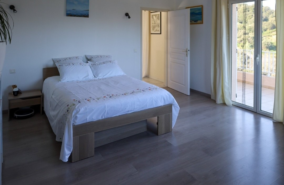 Située à 10 mn d'Ajaccio, sur la plaine d'Eccica-Suarella, villa regroupant un appartement principal de type T4, un second de type T2 et une chambre indépendante avec salle d'eau sur un terrain de 2000 m2 avec piscine. La construction datant de 2007, est bâtie sur 3 niveaux, sa surface est de 375,21 m2 (loi Carrez). Au rez de jardin, l'entrée du 1er appartement se fait par un hall suivi d'un immense coin jour en L, salon et salle à manger, un wc indépendant et une cuisine américaine entièrement équipée, en prolongement, deux grandes terrasses couvertes, puis au jardin et à la piscine, ainsi qu'un accès au rez de chaussée. Sur le même niveau, le coin nuit comprenant une chambre avec petite salle d'eau et un dressing, une 2eme chambre de 28m2 avec salle d'eau. Enfin, à l'étage, la suite parentale d'une superficie totale de 70 m2 contenant une grande chambre avec un coin bureau, une salle de bain avec baignoire, douche, vasques et wc suspendu puis une véranda fermée de 20m2 et un solarium avec vue sur les Iles Sanguinaires. La villa est très lumineuse de part ses grandes baies vitrées, la cuisine équipée avec un ilot central, climatisation dans toutes les pièces, chaque chambre possède sa salle d'eau, dans la suite, et sur la terrasse principale, de magnifiques charpentes apparentes. Au sous-sol, en rez de parking, un garage double (80m2) avec local piscine, atelier, cave et buanderie, mais également un appartement de type T2 composé d'un coin jour, une cuisine équipée, une chambre, une salle d'eau un wc. Indépendamment, une chambre avec salle d'eau. A l'extérieur, coté salon, l'espace piscine (traditionnelle de 11 x 5 m ) avec vue mer, de l'autre côté, 2 terrasses sur toute la longueur de la maison offrant une vue panoramique sur la plaine et les montagnes environnantes.