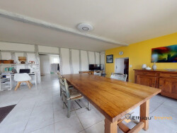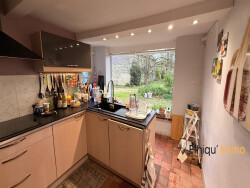 La cuisine permet un accès direct au garage, lui-même prolongé par un atelier situé dans la grange, offrant un espace fonctionnel et pratique au quotidien.