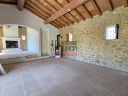 Voilà une maison de caractère ! Construite avec de beaux matériaux, elle est atypique, au calme et ensoleillée. Elle offre une surface de plus de 135m², un très bel espace de vie avec cheminée, poêle à granules, clim réversible, 3 chambres dont 2 en RDC et une à l'étage avec sa salle d'eau, dressing et clim réversible ! Dès l'entrée vous serez sous le charme de son sol en pierre, de ses murs en pierre et de ses poutres, typiquement provençale. Proche de toutes les commodités, elle offre un environnement très agréable. A découvrir sans tarder... DPE : D