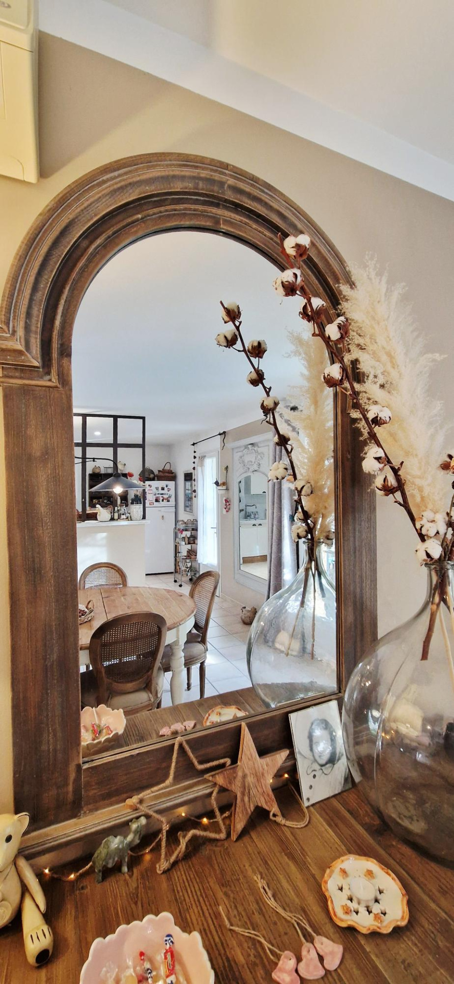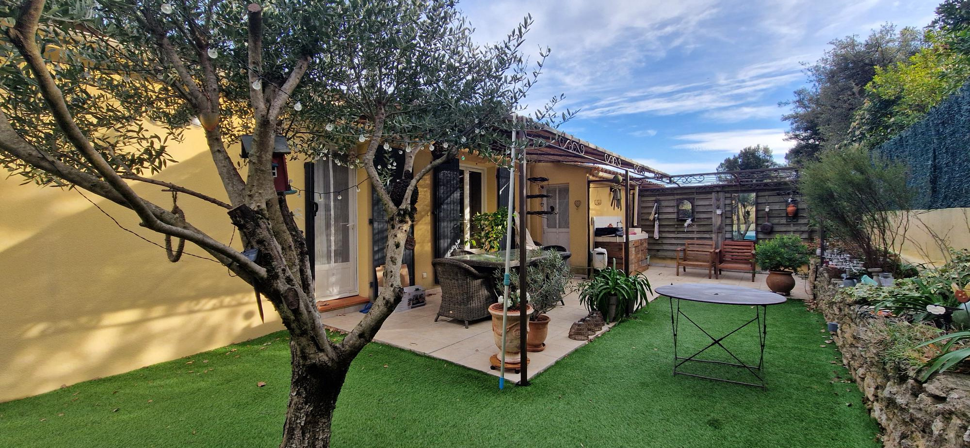 Les atouts Maison clé en main (aucun travaux) Cuisine équipée installée (four, plaque, hotte, lave-vaisselle) 3 chambres, dont suite parentale avec douche et meuble vasque Salle de bain (douche ou baignoire), double vasque, miroir LED WC indépendant Grande baie vitrée anthracite, volets roulants motorisés Climatisation gainable Carrelage grand format 60×120 (murs inclus) Garage avec porte motorisée (plafond en placo) Chemin d'accès fini en Balthazar Terrain clôturé hors portail.