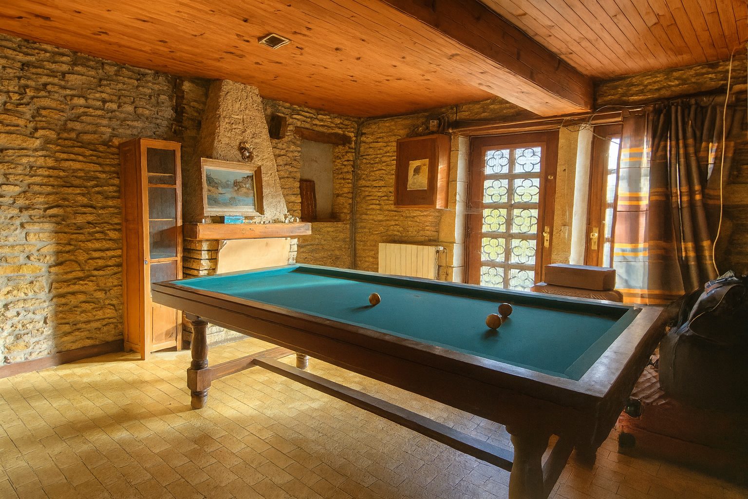 Maison principale : Rez-de-chaussée : entrée sur cuisine ouverte sur séjour, salon, wc, chambre, salle d'eau, bureau. Au premier étage : 4 chambres, un wc, une salle de bains. Au deuxième étage : 2 chambres et deux pièces. Doubles vitrages, chauffage central au fioul