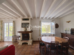 À l'étage, vous découvrirez un espace mezzanine, deux chambres se partageant une salle d'eau récente, ainsi qu'une suite parentale disposant de sa baignoire.