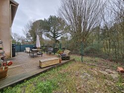 Agréable maison mitoyenne d'un côté de 86 m2 sur un terrain de 240m2. Elle se compose d'une entrée, d'une belle pièce de vie lumineuse traversante avec une cuisine aménagée et équipée donnant sur une grande terrasse avec vue sur la forêt. Au rdc vous trouverez également un wc, et un garage avec un coin buanderie de 18m2. A l'étage un dégagement dessert 3 chambres, une salle de bain et un wc indépendant. Vous profiterez d'un agréable jardin sur 3 côtés avec terrasse. La maison est équipée d'un poêle à granulés, de fenêtres et portes fenêtres PVC double vitrage avec volets roulants qui fonctionne avec des panneaux solaires. Située au calme dans un lotissement et proches des commodités (bus, tram D et commerces) et du Domaine du Pinsan
