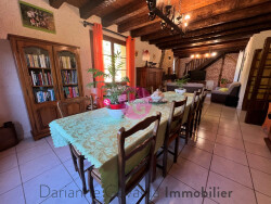 EXCLUSIVITE SPACIEUSE MAISON T9 SUR 1880 m² DE TERRAIN A découvrir agréable maison familiale avec vue dégagée située dans un secteur calme. Ce bien est composé en rez de chaussée d'une entrée, de deux grands garages (hauteur 3m), d'un atelier et de toilettes individuelles. Au premier niveau une terrasse couverte avec cuisine d'été, une véranda avec poêle à bois, une cuisine, un cellier, un salon/séjour avec insert, trois chambres, une salle de bain avec baignoire et douche, toilettes individuelles. Au second niveau une mezzanine, trois grandes pièces et une salle d'eau avec toilettes. Un terrain clos et arboré vient compléter ce bien. Le chauffage est au bois et au fioul, l'assainissement est individuel. Les honoraires sont à la charge du vendeur.