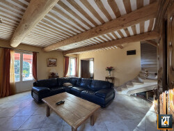 Superbe bastide de 122 m² sur 1 181 m² Dans un village calme, cette bastide traditionnelle offre un cadre paisible au coeur d'un magnifique jardin arboré. La propriété séduit immédiatement avec sa piscine 13 x 6 m, sa terrasse en travertin et son allée en béton imprimé, le tout sans aucun vis-à-vis. La maison bénéficie de prestations de qualité : chauffage gainable, aspiration centralisée, menuiseries en bois et volets sur mesure, ainsi que de belles poutres à l'ancienne qui renforcent son charme. Au rez-de-chaussée, vous profitez d'un séjour lumineux avec une cuisine semi-ouverte, complété par une buanderie et un WC indépendant. À l'étage, la maison propose deux chambres ainsi qu'un bureau pouvant servir de chambre d'enfant. Un bien plein de caractère, idéal pour ceux qui recherchent tranquillité et authenticité. À visiter sans tarder !