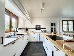 10 MN CAEN OUEST-SECTEUR RECHERCHEE UNIQUEMENT CHEZ FLO IMMOBILIER A FONTAINE-ETOUPEFOUR Dans commune tous commerces, à proximité rapide du centre ville de Caen, belle maison de 230m2 habitable, complètement rénovée, située dans une impasse au calme et comprenant: Au rez-de-chaussée : Entrée spacieuse, grand séjour-salon avec cheminée, cuisine aménagée et équipée, arrière-cuisine, grande véranda et autre pièce dans la continuité avec poêle à pellets, WC indépendant .Pièce de 30 m2 pouvant être aménagée . Au 1er étage : grand palier aménagé en bureau, 4 chambres dont une suite parentale avec salle de bain avec baignoire et douche, 2 salles de douche supplémentaires avec WC. Sous sol complet avec grand garage. Terrasse, piscine chauffée par pompe à chaleur (fermeture possible avec système coulissant) , Huisseries PVC double vitrage, chaudière gaz de ville, Fibre optique. A visiter rapidement