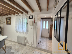 Elle se compose d'une entrée avec rangements, d'un séjour avec cheminée, d'une salle à manger, d'une grande cuisine entièrement aménagée et équipée, d'un W.C séparé.