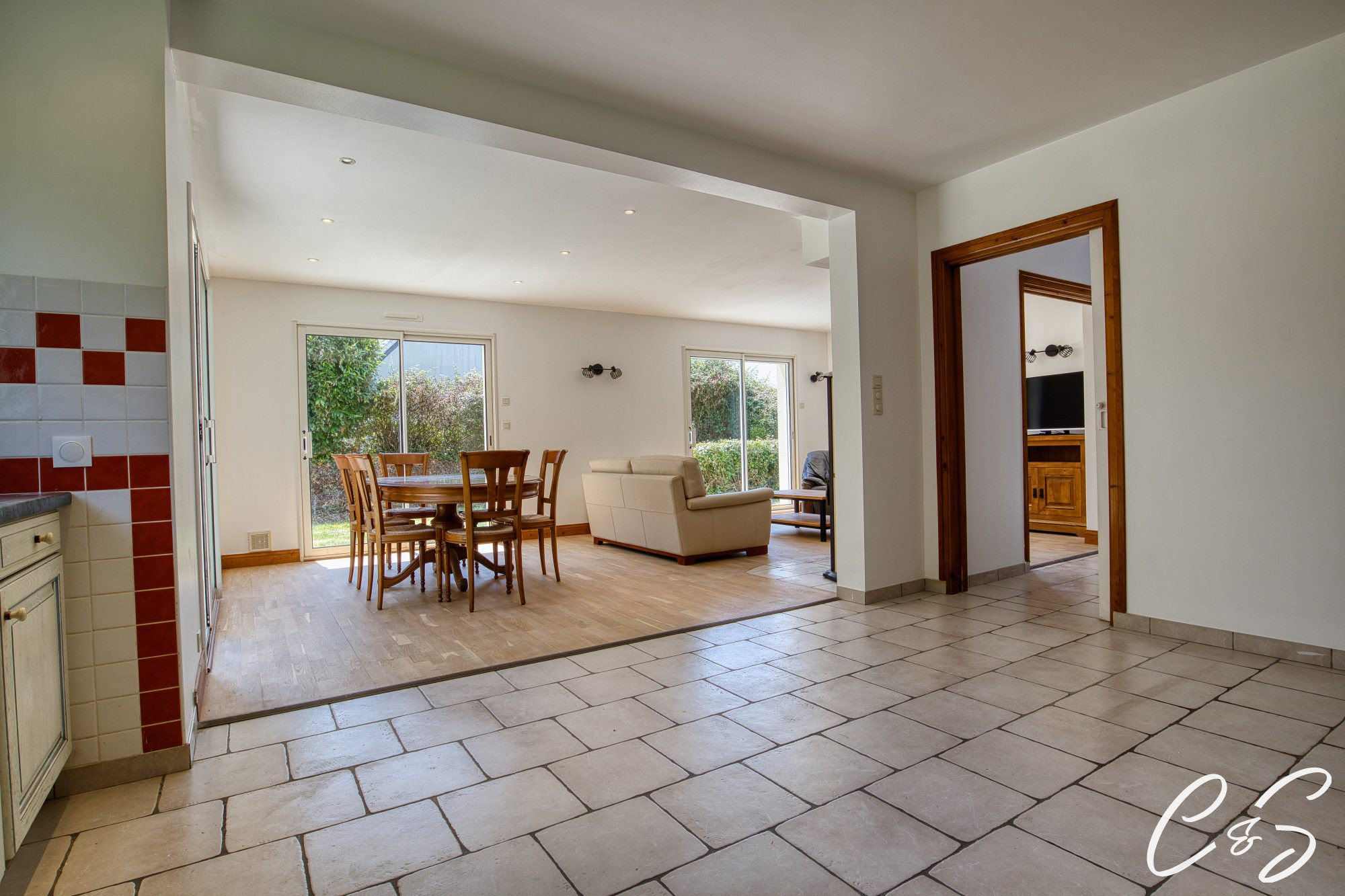 Le séjour de 42 m² est le coeur de cette maison, un espace convivial où chaque moment devient spécial. Les grandes ouvertures en aluminium laissent entrer la lumière à flots, créant une atmosphère chaleureuse et accueillante. La cuisine aménagée et équipée est un véritable atout pour les amateurs de cuisine, offrant à la fois fonctionnalité et style.
