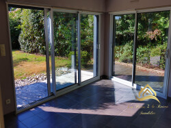 Cette maison, avec sa toiture en ardoise naturelle et son isolation en laine de verre, est non seulement esthétique mais aussi économe en énergie. Les portes à double vitrage assurent une isolation phonique et thermique optimale.