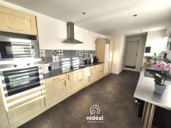 - Entrée sur pièce de vie de 45m² avec grande cuisine ouverte sur séjour cosi. - Salle de bains avec douche et baignoire. - WC. - 3 chambres + dressing ou bureau. - Jardin clôturé avec terrasse. - Parking privatif à l'avant. - Menuiseries PVC double vitrage. Chauffage électrique + feu à pellets. Tout-à-l'égout ok. Toiture tuiles. - Taxe foncière 900.