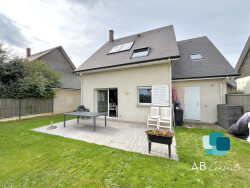 entrée, wc séparé, espace cuisine aménagée et équipée, salon/séjour avec accès terrasse et jardin. A l'étage, palier, 4 chambres dont une avec salle de douche, wc séparé, salle de bain.