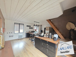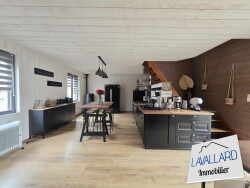 La maison, rénovée en 2022, allie le charme de l'ancien avec le confort moderne. Le séjour spacieux de 38 m² est baigné de lumière grâce à ses grandes ouvertures en bois, créant une atmosphère chaleureuse et accueillante. La cuisine équipée, moderne et fonctionnelle, est un véritable plaisir pour les amateurs de cuisine.