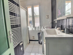 Au premier étage, un palier desservant trois belles chambres ainsi qu'une salle de bains avec wc, baignoire/douche et double vasque.
