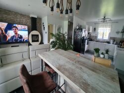 Situé dans un secteur paisible de Friville-Éscarbotin, ce pavillon de 2012, construit par les Maisons Picardes, offre un cadre de vie idéal. D'une superficie d'environ 130 mètres carrés de plain-pied, la maison se compose de quatre chambres, d'un hall d'entrée, d'un séjour chaleureux avec une cheminée à bois, et d'une magnifique véranda. La cuisine, entièrement équipée, s'ouvre sur le reste de la maison. On trouve également une salle de bains, un WC indépendant, et un système de ventilation simple flux. Le chauffage principal est électrique, complété par un chauffage d'appoint au bois. Le terrain clos, d'environ 1164 mètres carrés, est doté d'un portail électrique, offrant à la fois intimité et sécurité.