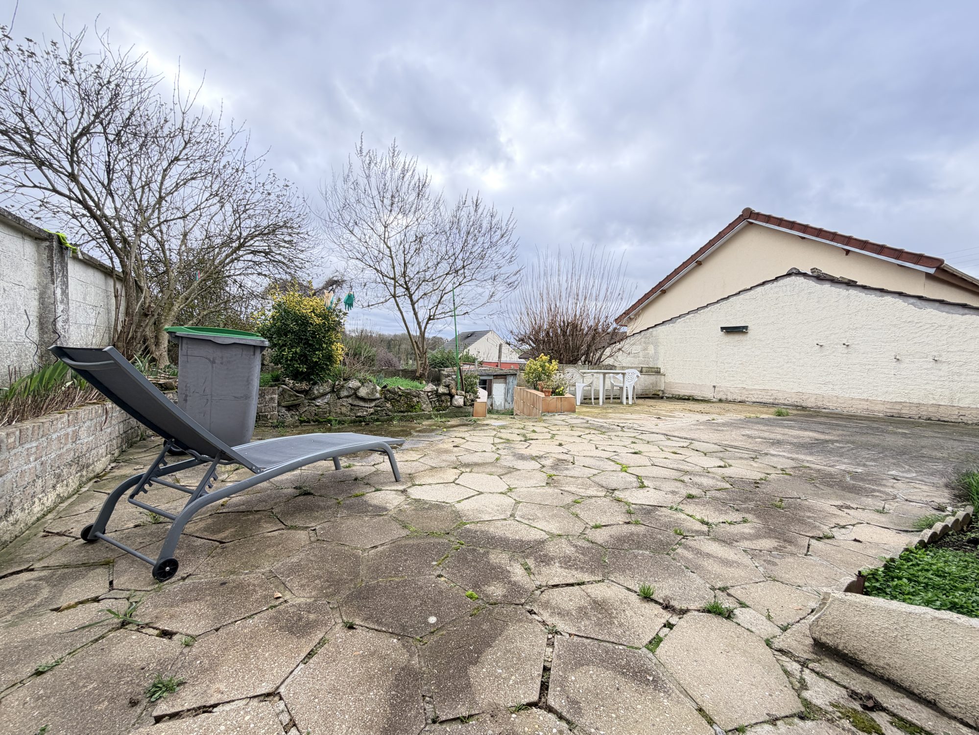Goussainville, proche toutes commodités, pavillon offrant, au rez-de-chaussée, entrée, séjour avec cheminée, cuisine équipée, chambre, salle d'eau avec WC. A l'étage, 2 chambres, dressing, WC. Garage 1 voiture (26m²), dépendance cadastrée (12m²), terrain clos de 404 m².