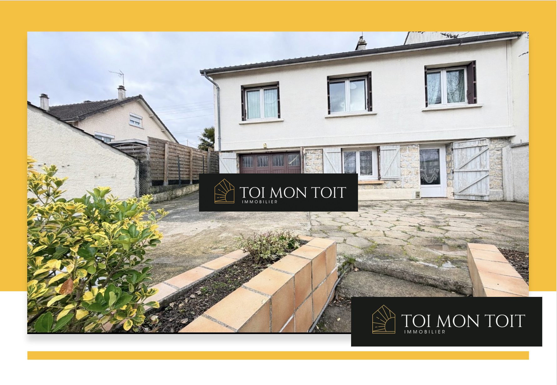 Goussainville, proche toutes commodités, pavillon offrant, au rez-de-chaussée, entrée, séjour avec cheminée, cuisine équipée, chambre, salle d'eau avec WC. A l'étage, 2 chambres, dressing, WC. Garage 1 voiture (26m²), dépendance cadastrée (12m²), terrain clos de 404 m².