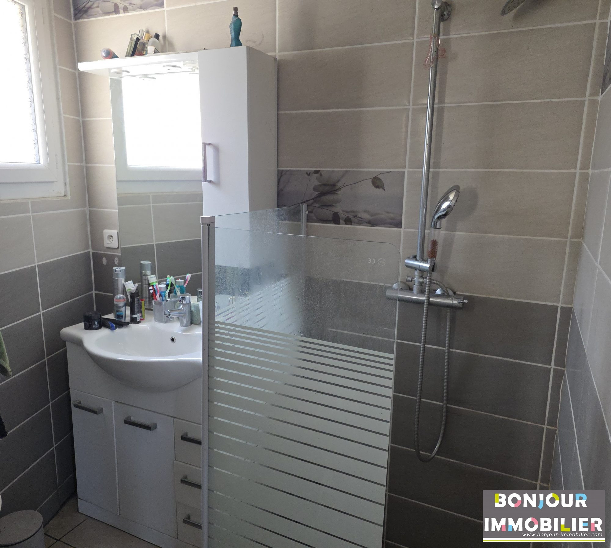 - Informations et caractéristiques de la maison : . Construction de 2010 . Superficie totale de 112m² . Surface habitable de 92m² . Terrain d'environ 190m² . Terrasse de 13,49m² . Une place de stationnement . Volets électriques . Hors copropriété / Hors lotissement . Garage (avec mezzanine) . Menuiseries double vitrage . Système d'alarme . Chauffage électrique . Chauffage au sol dans la pièce de vie . Tout à l'égout . Fibre