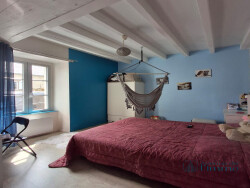 Le rez-de-chaussée comprend : cuisine aménagée et équipée, séjour lumineux, deux chambres, salle de bain et WC.À l'étage : une grande chambre mansardée d'environ 27 m² au sol.