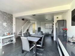 Voici le descriptif détaillé du bien : Au rez-de-chaussée, un hall d'entrée avec des w-c séparés, un séjour traversant baigné de lumière naturelle, parfait pour les soirées en famille ou les réception entre amis, une cuisine semi-ouverte, équipée et moderne laquelle donne sur un cellier et une lingerie. Le bien offre également, toujours au rez-de-chaussée, une CHAMBRE et un BUREAU.